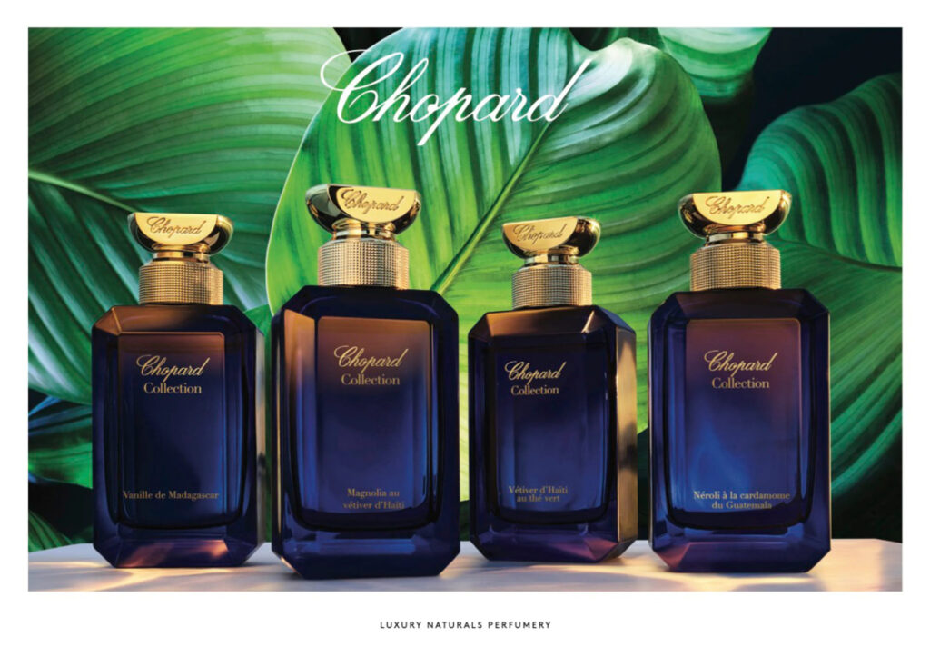 Mit dem Relaunch von Chopard Parfums nahm die Marke zudem eine natürliche, ressourcenbewusste Ausrichtung ein. Die Haute-Parfumerie-Linien – inspiriert u. a. von „Gardens of the Tropics“ – stellen edle Naturrohstoffe in den Mittelpunkt und arbeiten mit verlässlichen Partnern entlang der Lieferkette. Programme wie „Naturals Together“ (heute Teil von dsm-firmenich) unterstützen hochwertige, verantwortungsvoll gewonnene Ingredienzen – beispielsweise Vetiver aus Haiti, Vanille aus Madagaskar oder Kardamom aus Guatemala – und verbinden Duftkunst mit langfristiger Qualitäts- und Herkunftssicherheit.